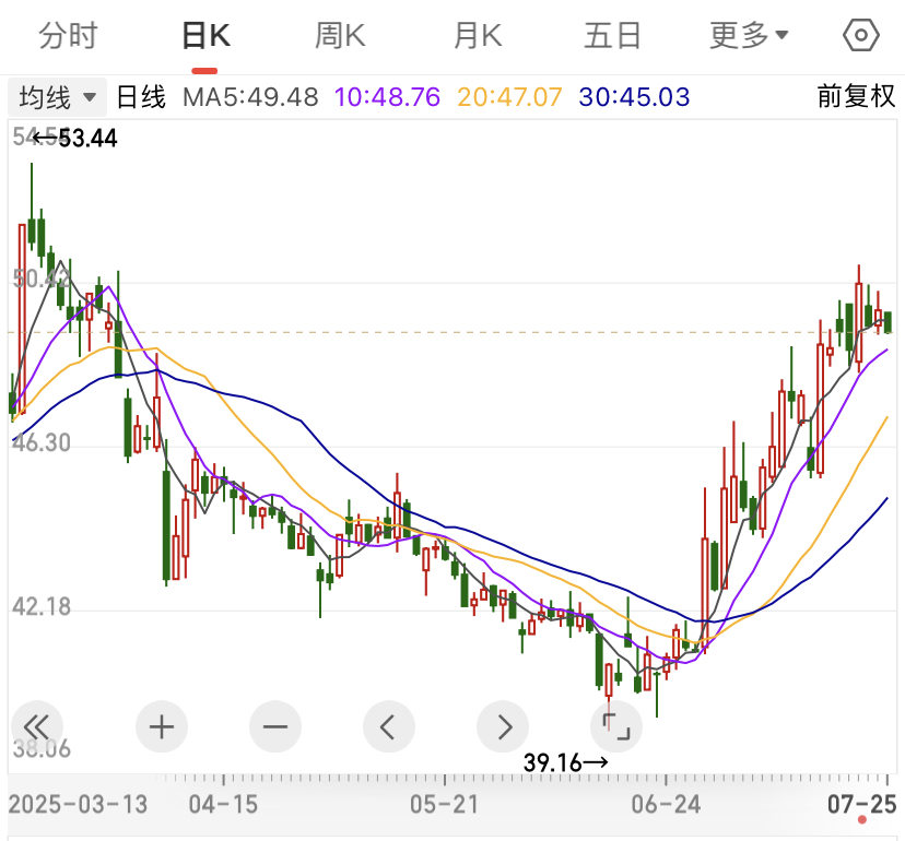 从二级市场表现来看,投资者对酒鬼酒的经营状况保持谨慎态度。7月24日分红方案公布当日,公司股价微跌0.12%,市场反应相对平淡。拉长时间维度观察,酒鬼酒股价自年初53.44元的高点持续震荡下行,至6月中旬一度触及39.16元的阶段性低点,期间累计跌幅达26.72%。