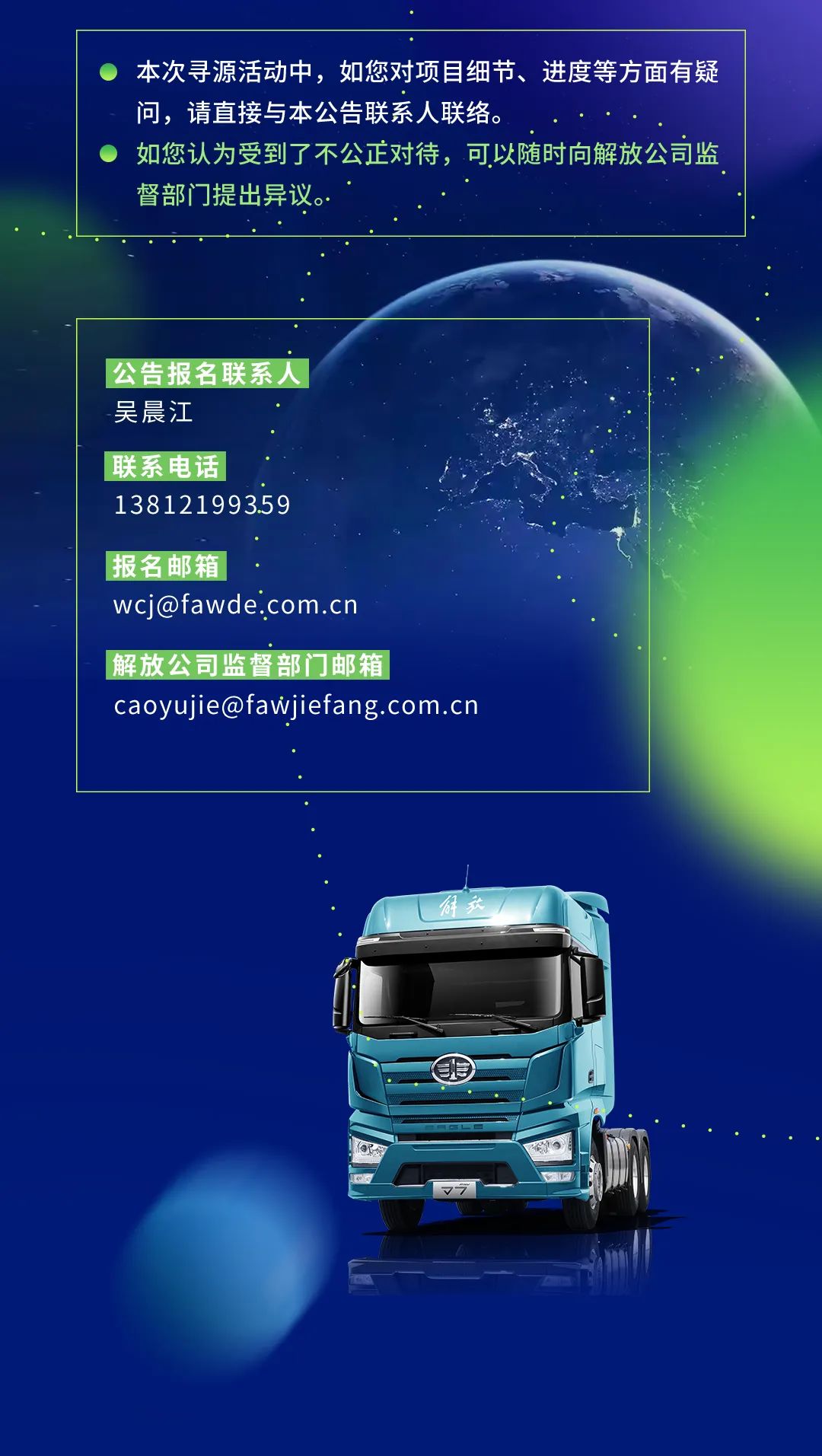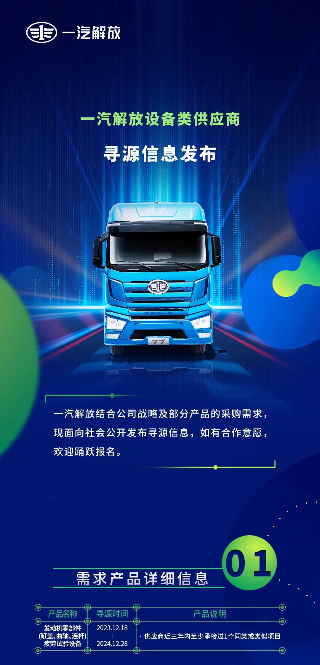 一汽解放设备类供应商寻源信息发布