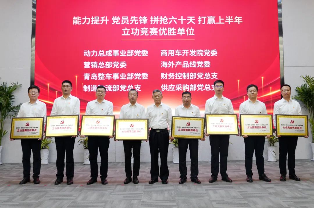会上,王浩宣读“拼抢六十天,打赢上半年”立功竞赛表彰决定,吴碧磊为获奖单位颁奖。授予动力总成事业部党委、商用车开发院党委、营销总部党委、海外产品线党委、青岛整车事业部党委、财务控制部党总支、制造物流部党总支、供应采购部党总支等8个党组织为“立功竞赛优胜单位”。授予动力总成事业部李洪、吴浩,哈轻公司崔海,新能源车产品线李健宇,青岛整车事业部宋开成、王玉玺为“立功竞赛全员营销先锋个人”。