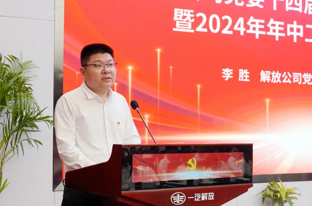 一汽解放总经理、党委副书记李胜传达中国一汽党委十四届二十次全体(扩大)会议暨 2024 年年中工作会议精神。