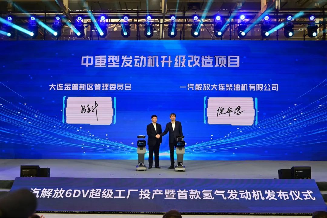仪式上,大连金普新区与一汽解放动力总成事业部大柴工厂签署《一汽解放大柴中重型发动机升级改造项目投资协议》。