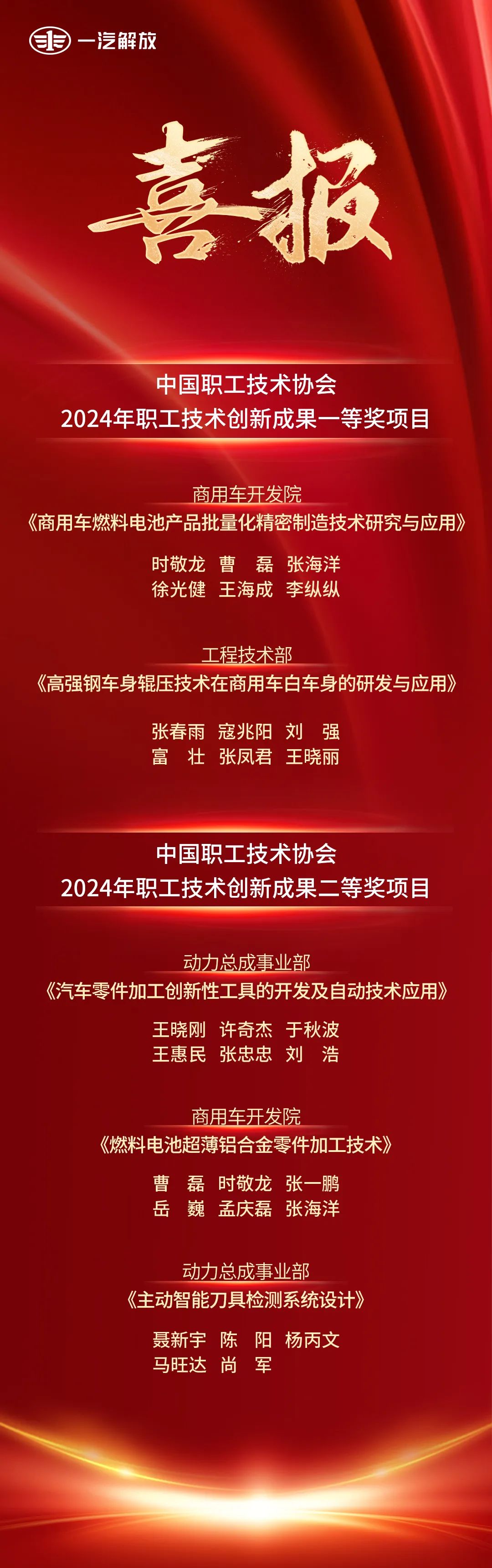 一汽解放多个项目荣获中国技协2024年职工技术创新成果奖