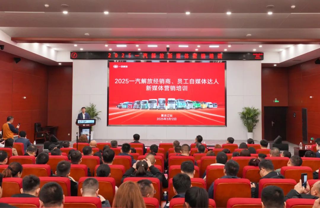 为把握网红经济与直播营销新机遇,进一步提升全员新媒体直播和营销能力,3月12日,一汽解放在长春开展2025年第二期新媒体营销培训活动。一汽解放党委副书记、工会主席王浩出席活动并讲话。一汽解放营销总部党委副书记、纪委书记、工会主席乔小兵,常务副总经理范国强参加会议。一汽解放经销商伙伴和员工自媒体达人共300余人参加培训。