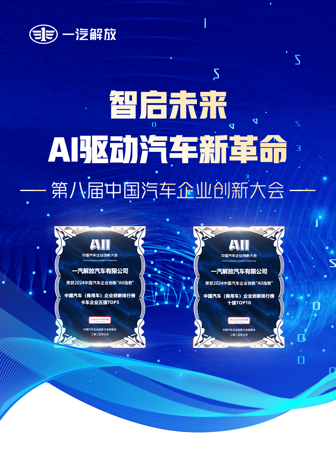 3月21日,由汽车评价研究院主办,以“智启未来——AI驱动汽车新革命”为主题的第八届中国汽车企业创新大会暨中国汽车企业创新“安亭指数”发布会在上海举行。一汽解放作为商用车领域自主创新的标杆、汽车企业创新的典范,不负众望,连续八届蝉联中国汽车(商用车)企业创新排行榜第一名和中国汽车(商用车)企业创新排行榜卡车企业第一名!