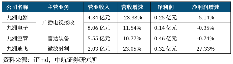 公司聚焦“数字有线电视业务”、“空管装备业务”及“微波射频业务”的布局和发展。在数字有限电视领域,公司以九洲电器及九洲电子科技为业务主体,产品包括数字音视频终端、数据通信终端、数字融合终端等;在空管业务方面,公司是国内最大的军、民用空管系统及装备科研生产基地,下属九洲空管主营空管系统及相关航电设备的研制生产。在微波射频领域,公司下属九洲迪飞主要从事微波射频器件、组件及整机等产品的研制生产,面向雷达、航天通信、电子对抗等领域。公司始终坚持“优质高效占市场,严格标准争一流,持续改进创卓越,顾客满意求发展”的质量方针不动摇,空管及微波射频产品订单不断优化,市场影响力持续扩大。