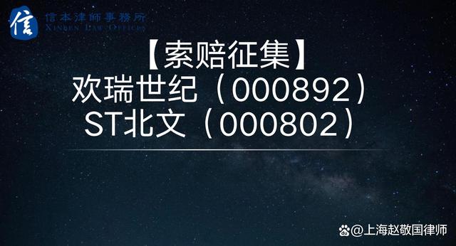 信本证券维权团队提醒,ST北文同样面临大批投资者索赔。ST北文于2020年12月31日收到中国证监会《调查通知书》(编号:京调查字 20164号),因公司涉嫌信息披露违法违规,根据《中华人民共和国证券法》的有关规定,决定对公司立案调查。2021年11月2日,公司收到北京证监局出具的《行政处罚决定书》(【2021】10号)及《市场禁入决定书》(【2021】1号),北京证监局认定世纪伙伴公司虚假转让《大宋宫词》《倩女幽魂》投资份额收益权,导致北京文化在 2018 年年度报告中虚增收入合计 46,037.74万元,占当期营业收入(追溯调整前)比例为38.20%,虚增净利润19,108.02万元,占当期净利润(追溯调整前)比例为58.94%。北京文化2018年年度报告存在虚假记载。上海市信本律师事务所赵敬国律师认为,于2019年3月22日-2020年4月28日期间买入,无论在2020年4月29日后是否卖出的投资者,可发起索赔。
