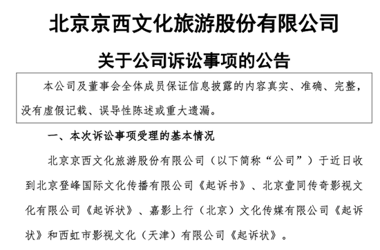 10月25日晚,北京文化再次披露了多起诉讼事项。