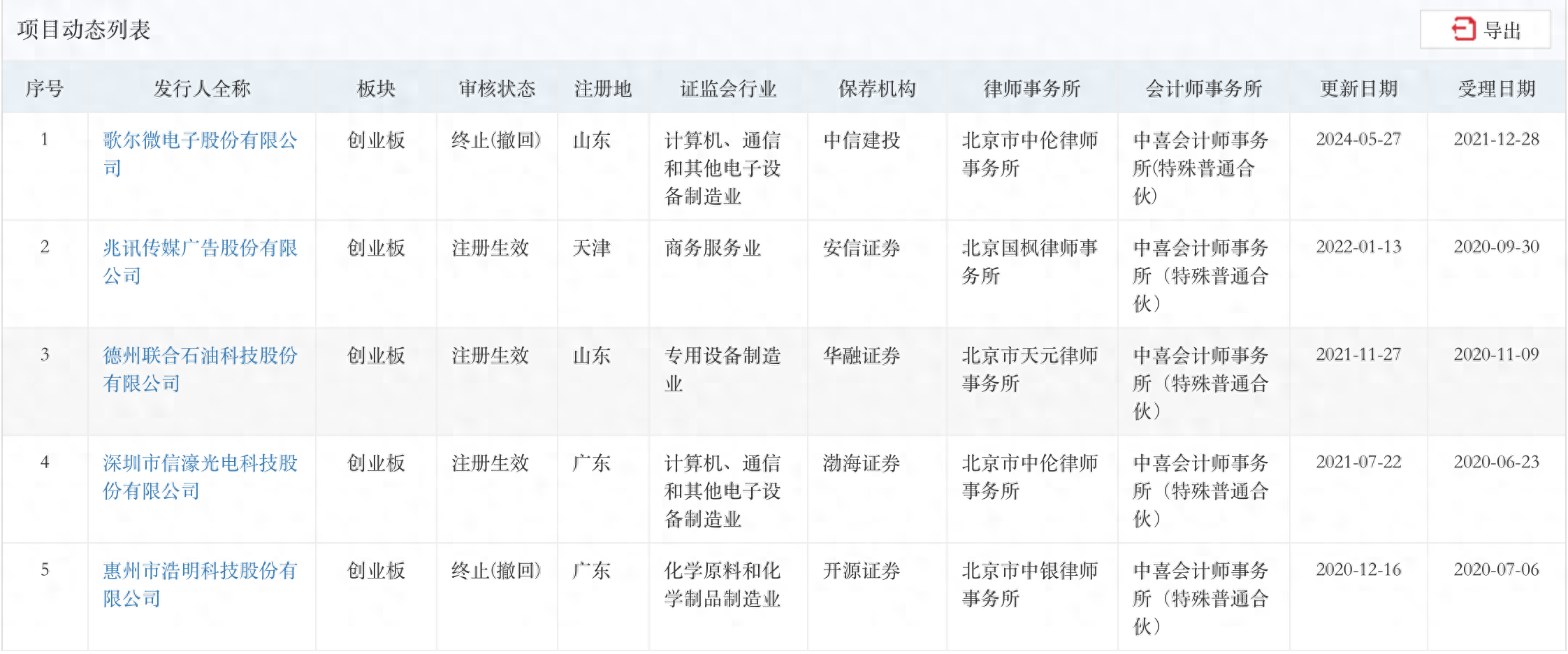 据界面新闻查阅,目前深市涉及中喜所的项目5个,不过相关签字注册会计师均非上述被点名之人。