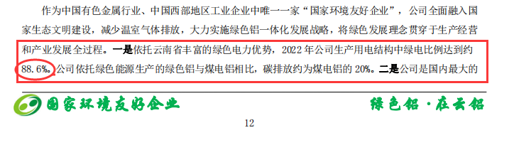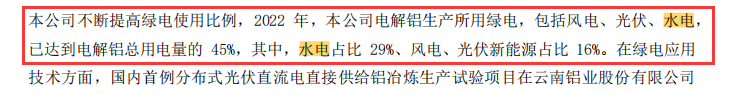 相较于中国铝业,云铝股份最大的优势之一,就在于其炼铝用电的绿电比例。