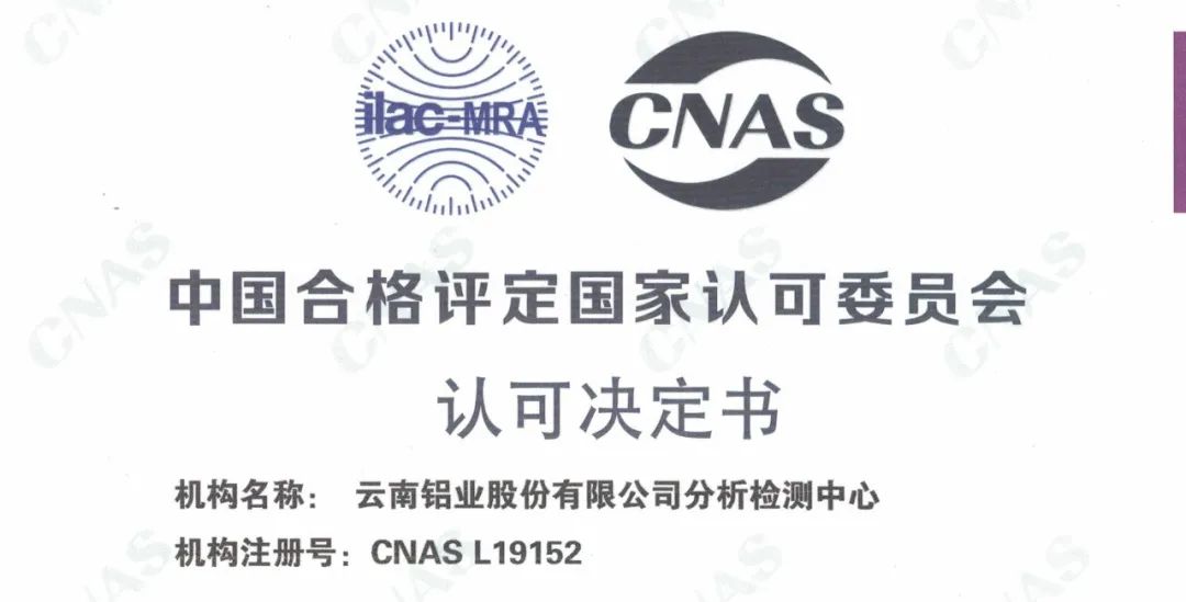 云铝分析检测中心通过中国合格评定国家认可委员会(CNAS)认可,并于10月13日获得实验室认可证书(注册号:CNAS L19152)。这标志着云铝分析检测中心已经建立了符合国际标准的实验室管理体系,具备按照国际认可准则开展项目检测的能力,可出具具备国际认可、行业公信力的权威报告。
