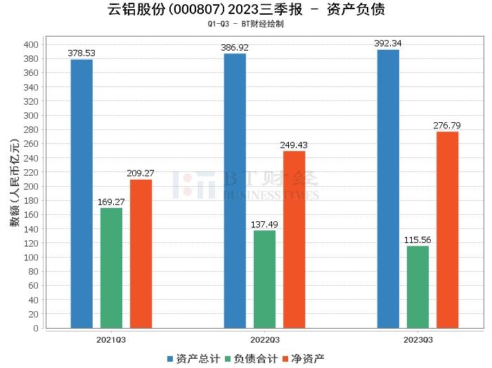 首先,我们来看看云铝股份的资产负债情况。报告期末,云铝股份的总资产为392.34亿元,相比上年度末的390.59亿元略有增长。负债合计为115.56亿元,相比上年度末的137.84亿元大幅下降。净资产为276.79亿元,相比上年度末的252.76亿元有所增长。资产负债率为29.45%,相比上年度末的35.29%有所下降。这表明公司的负债状况得到了改善,偿债能力增强。