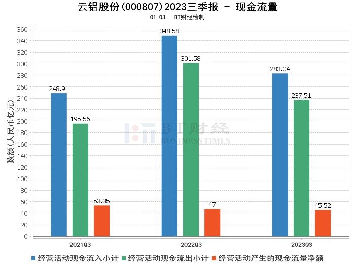 再来看看公司的现金流量情况。报告期内,云铝股份经营活动产生的现金流量净额为45.52亿元,相比上年同期的47亿元略有下降。经营活动现金流入小计为283.04亿元,相比上年同期的348.58亿元有所下降。经营活动现金流出小计为237.51亿元,相比上年同期的301.58亿元有所下降。这些数据显示,公司的现金流量状况总体稳健。