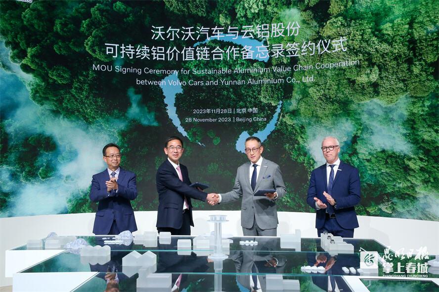 掌上春城讯 11月28日,在以“链接世界,共创未来”为主题的首届中国国际供应链促进博览会上,云南铝业股份有限公司与沃尔沃汽车(亚太)投资控股有限公司签署了可持续铝价值链合作备忘录。