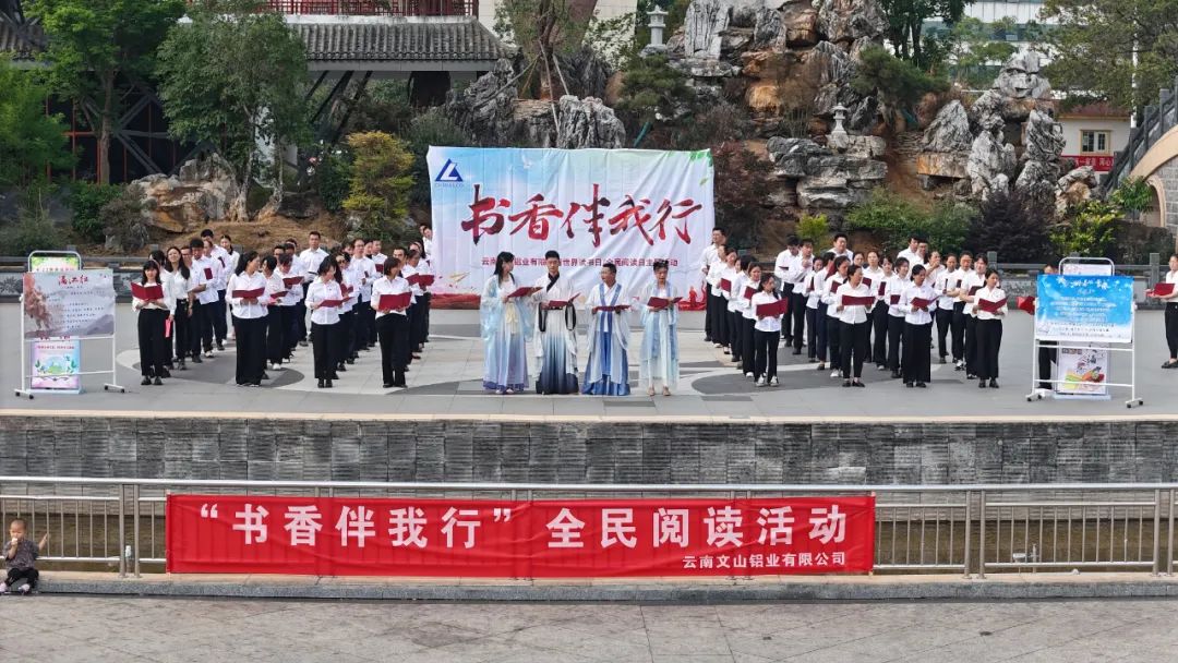 4月23日,云铝文山在文山市七花广场开展“书香伴我行”全民阅读活动,来自该公司各支部的职工代表共70余人参加活动。活动以典耀中华诵、“千人诵读”专场、“千人诵读”分场、书香创意DIY、诗词挑战大赛等形式展现了中国传统文化、中华汉字文化传承的源远流长,也让广大参与者深刻感受到书籍中蕴含的智慧,进一步营造了“爱读书、读好书、好读书”的良好氛围,有力推动全民阅读活动常态化。(文/钟汪滑马清图/周沙沙)