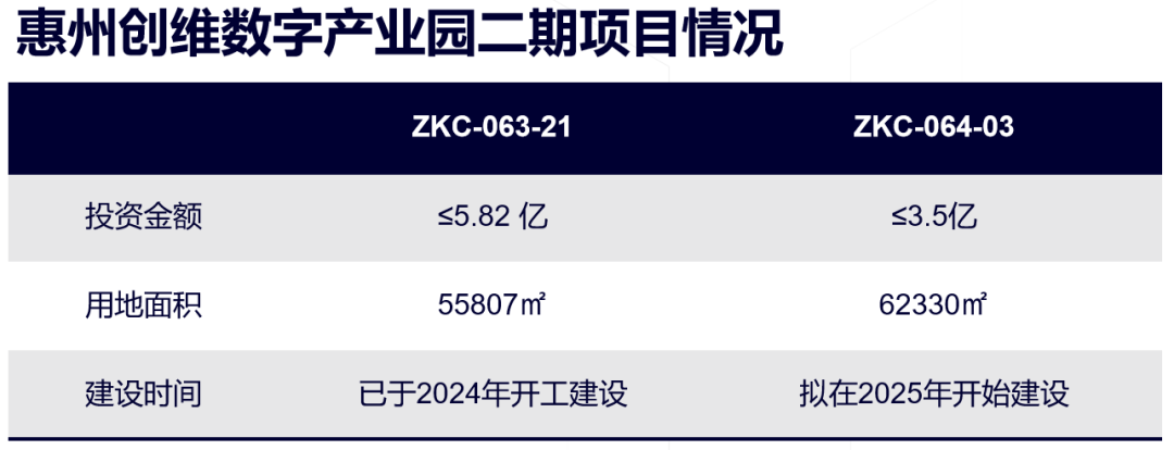 据介绍,该项目位于广东省惠州市,总投资不超过9.32亿元,分两个地块建设。其中,ZKC-63-21地块已于2024 年度开工建设,总投资不超过5.82亿元;ZKC-64-03地块已规划完毕拟将于 2025 年度开始建设,总投资不超过3.5亿元,拟建设生产基地及研发相关配套用房。