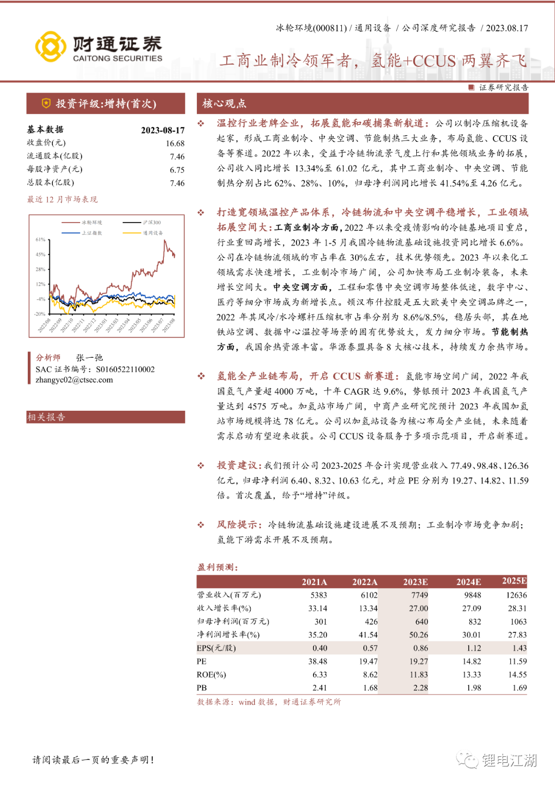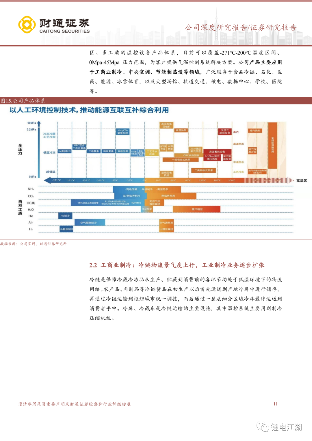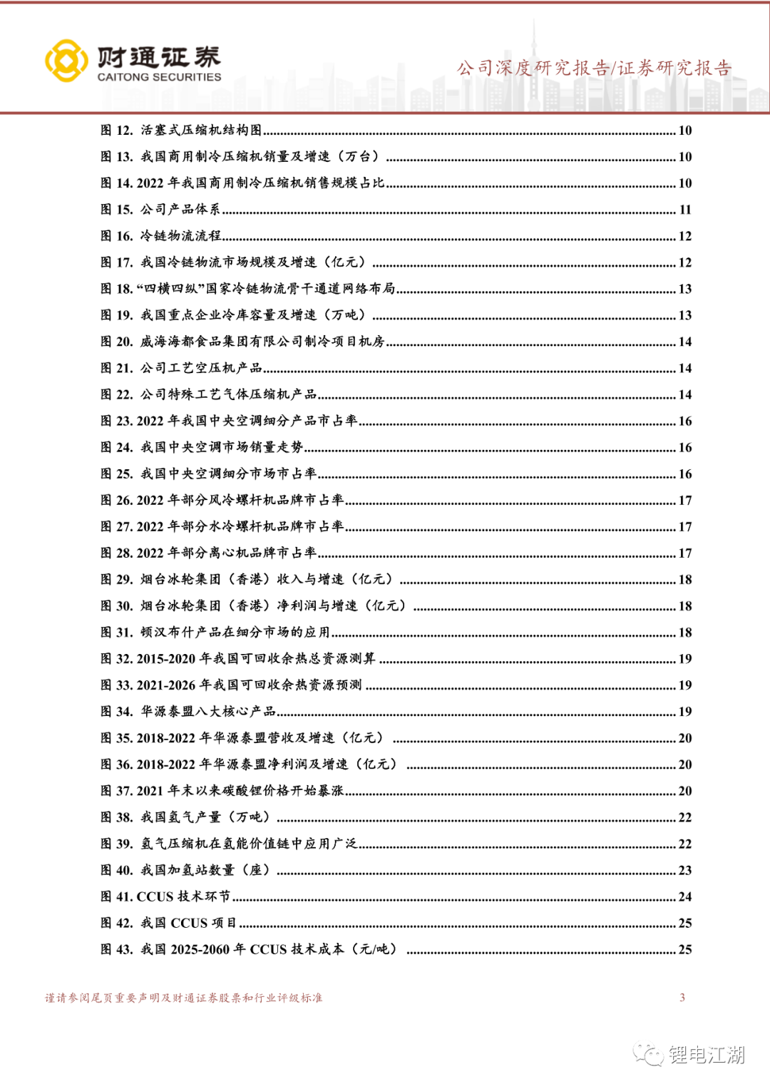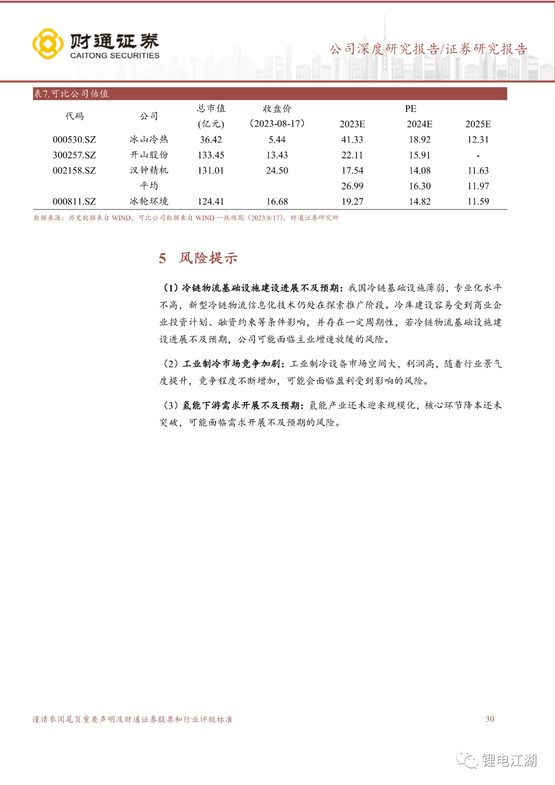 风险提示:冷链物流基础设施建设进展不及预期;工业制冷市场竞争加剧;氢能下游需求开展不及预期。