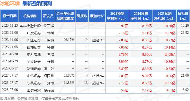 以下是详细的盈利预测信息: