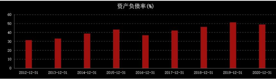 陕西金叶的业绩此时却无法给股价上涨提供任何动力。其营收在2016年从5亿元上升到10亿元级别后,归属净利润却大幅下降,从此前的7千万元,一路跌落到2千万元,多元化转型增收降利润,成为困扰陕西金叶多年的难题,而且公司的负债还一路走高,资产负债率从2016年的36.84%增至2020年的48.83%。