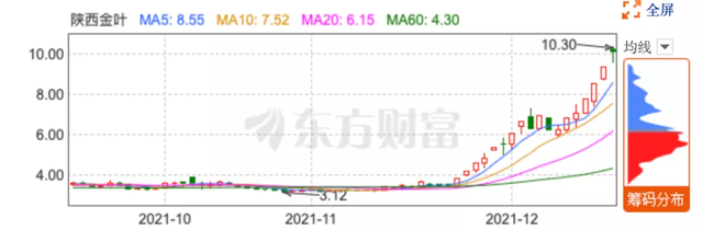 从11月23日到12月15日,陕西金叶科教集团股份有限公司(下简称“陕西金叶”)的股票,在17个交易日收获11个涨停板,总市值从27亿元涨到71亿元,涨幅达到163%。