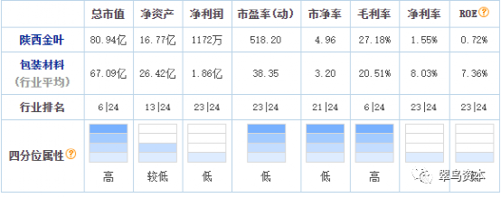 以行业横向数据比较,陕西金叶的净利润、市盈率、市净率、净利率和ROE均处于行业低位。
