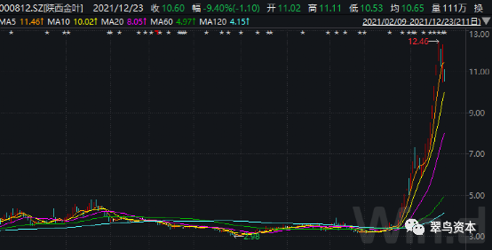 自今年11月16日开始,陕西金叶股价开始明显异动,截至12月22日收盘,这期间股价涨幅超过200%。