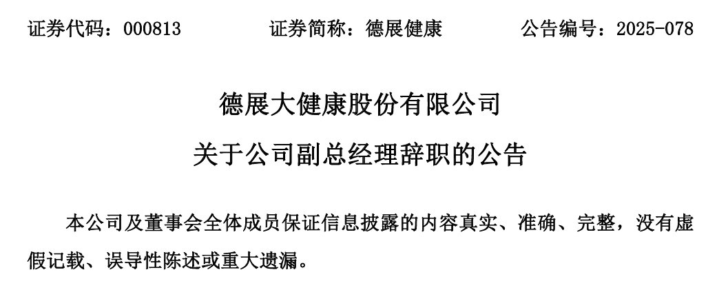 德展大健康12月13日公告,公司董事会于近日收到公司副总经理王曙宾先生提交的书面辞职报告,王曙宾先生因个人原因,申请辞去公司副总经理及公司子公司相关职务。辞职生效后,王曙宾先生将不再担任公司及公司子公司任何职务。