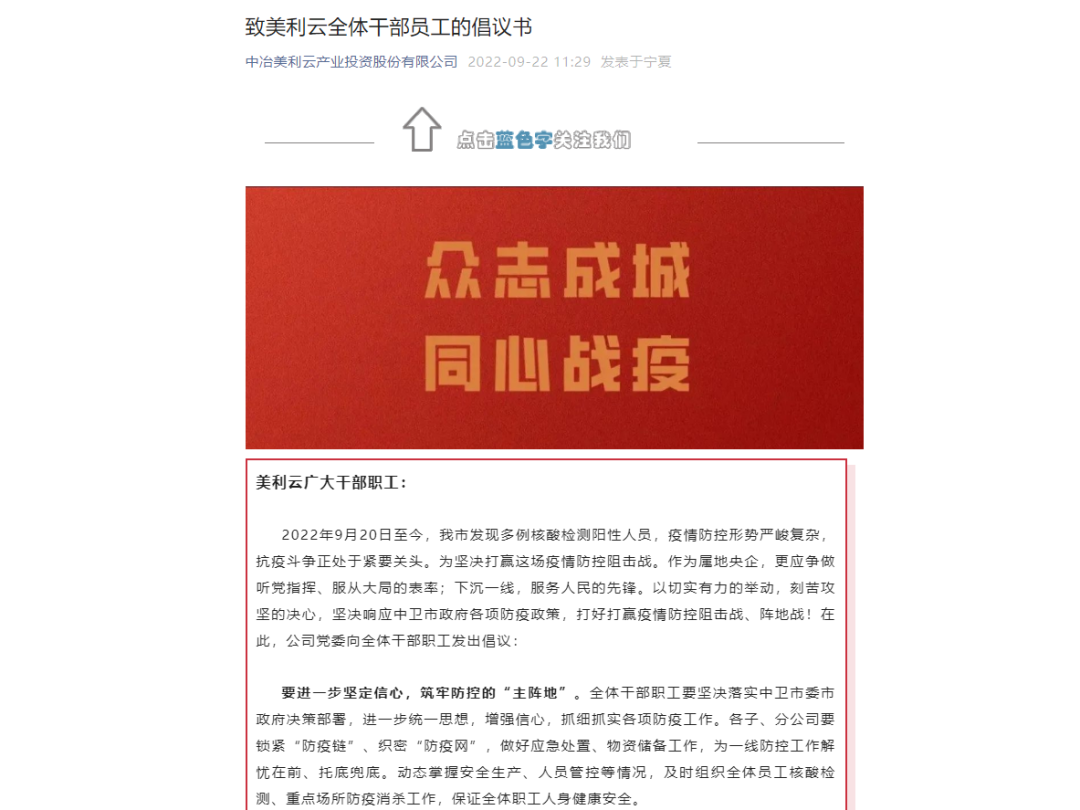 当前,疫情防控仍处紧要关头,公司党委将进一步落实好政府疫情防控各项部署要求,严格按照《关于进一步严格执行疫情防控要求的通知》,强化组织领导,坚持一手抓疫情防控,一手抓安全生产,切实发挥基层党组织作用,发动职工群众力量,加大对一线职工的组织关怀力度,用高高飘扬的党旗凝聚起抗击疫情的强大合力,以扎实的成绩迎接党的二十大胜利召开。