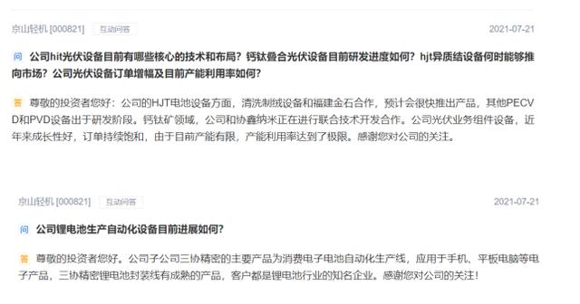 今年锂电池、光伏为主的新能源板块是市场最火热的板块之一。京山轻机在互动易平台和投资者的互动中,很多也都是围绕新能源相关业务展开。