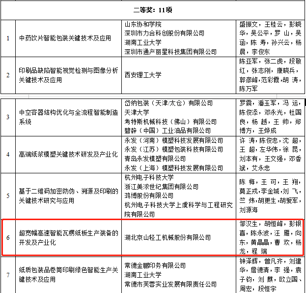 重磅消息!京山轻机“超宽幅高速智能瓦楞纸板生产装备的开发及产业化”项目成功通过包装行业科学技术奖励评审委员会评审、包装行业科学技术奖励管理委员会审定,荣获2021年度包装行业科学技术奖二等奖!