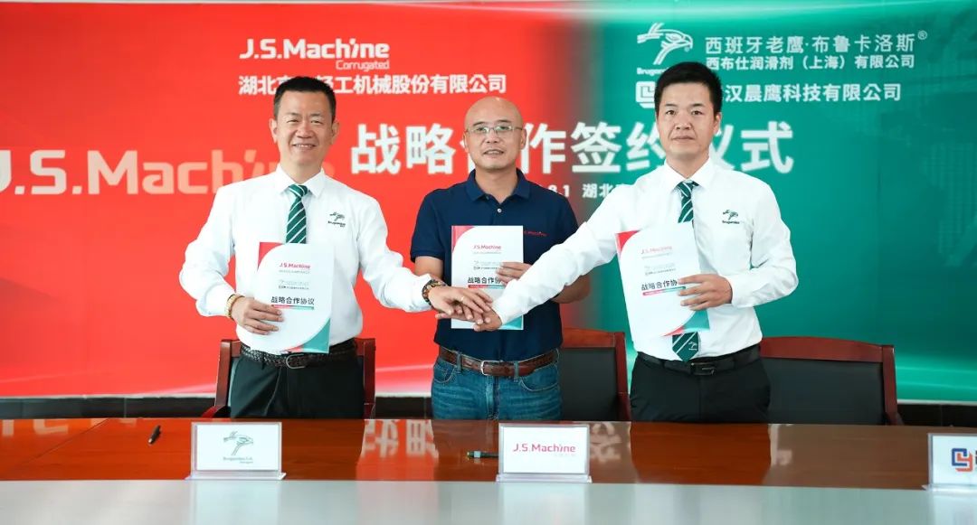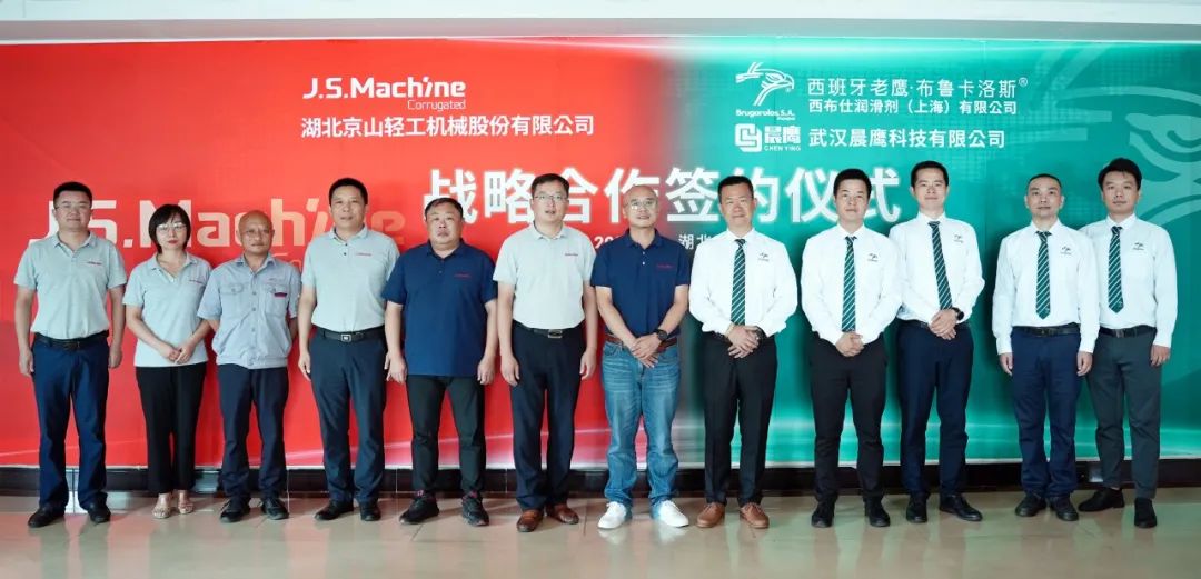 8月1日,京山轻机与西班牙老鹰·布鲁卡洛斯西布仕润滑剂(上海)有限公司、武汉晨鹰科技有限公司就合作事宜进行深入交流,并现场签订战略合作协议。
