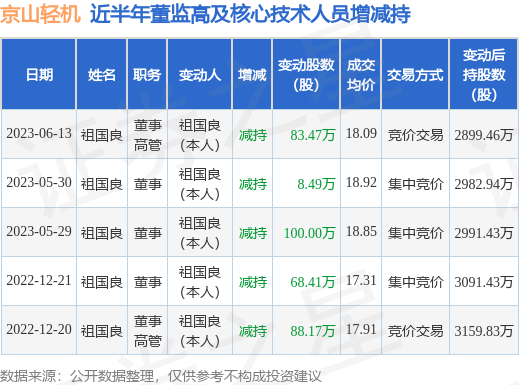 京山轻机近半年内的董监高及核心技术人员增减持详情如下: