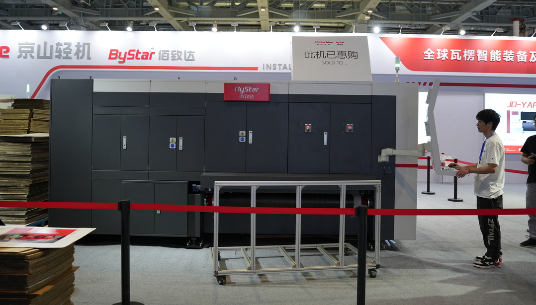 此次亮相中国国际瓦楞展,京山轻机展出了JD-Yarn2500D扫描式瓦楞纸数码打印机,该设备致力于满足个性化时代需求,支持各类纸板规格,采用无版印刷技术,实现高速高效生产,满足高精度的打样需求,涂布纸印刷,画质细腻,可替代部分胶印。
