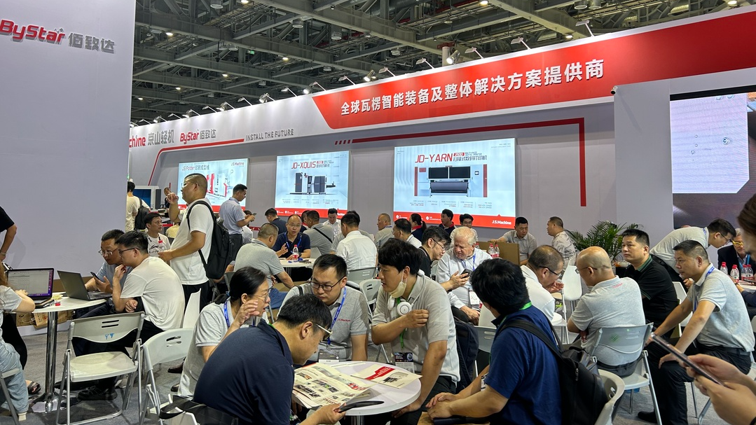 与此同时,本次还展出了JD-Xquis1600数码印刷线,该设备采用六色方案,防水油墨,色彩鲜亮,并支持最大拓展至八色。喷头坚固耐用,可拆卸维修,提供了行业有竞争力的质保。展会期间,京山轻机与浙江及俄罗斯客户成功签订设备购买合同,助力客户巩固生产优势,提高效率,获得更广泛的业务。
