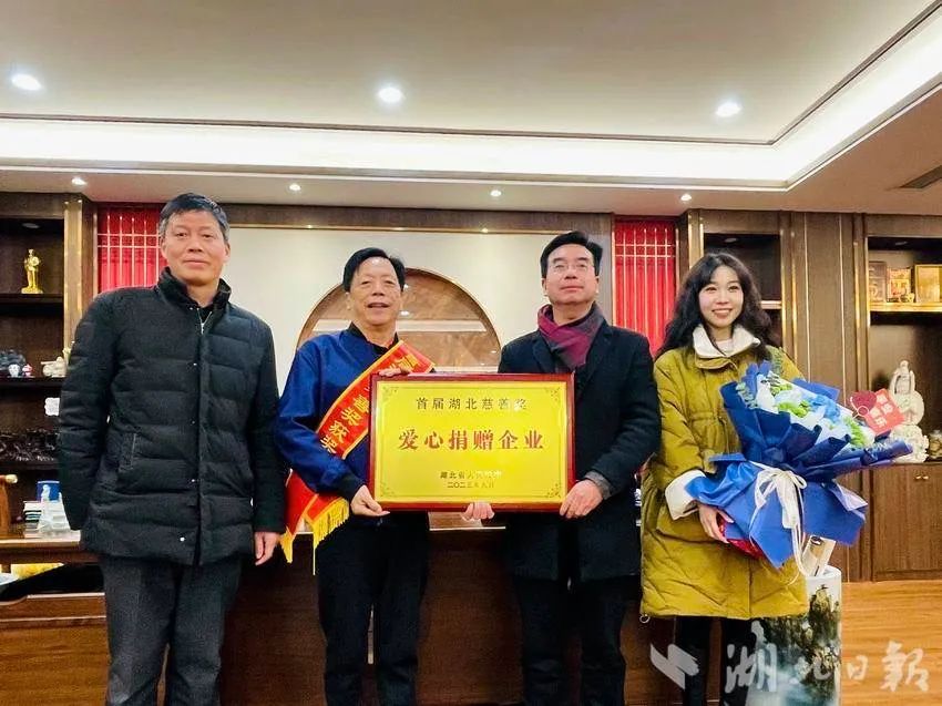 2月1日,京山市民政局党组书记、局长祝君一行前往湖北京山轻工机械股份有限公司,为企业颁发“湖北慈善奖”奖牌和证书,并送上新春祝福。