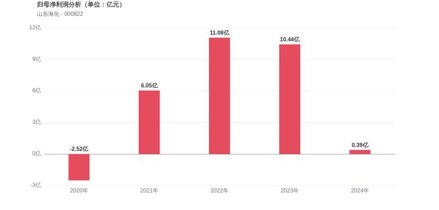 利润角度分析,2020年山东海化实现归母净利润-2.52亿元,2024年0.39亿元。公司盈利状况在2021年和2022年明显改善,但2024年再度大幅下滑。