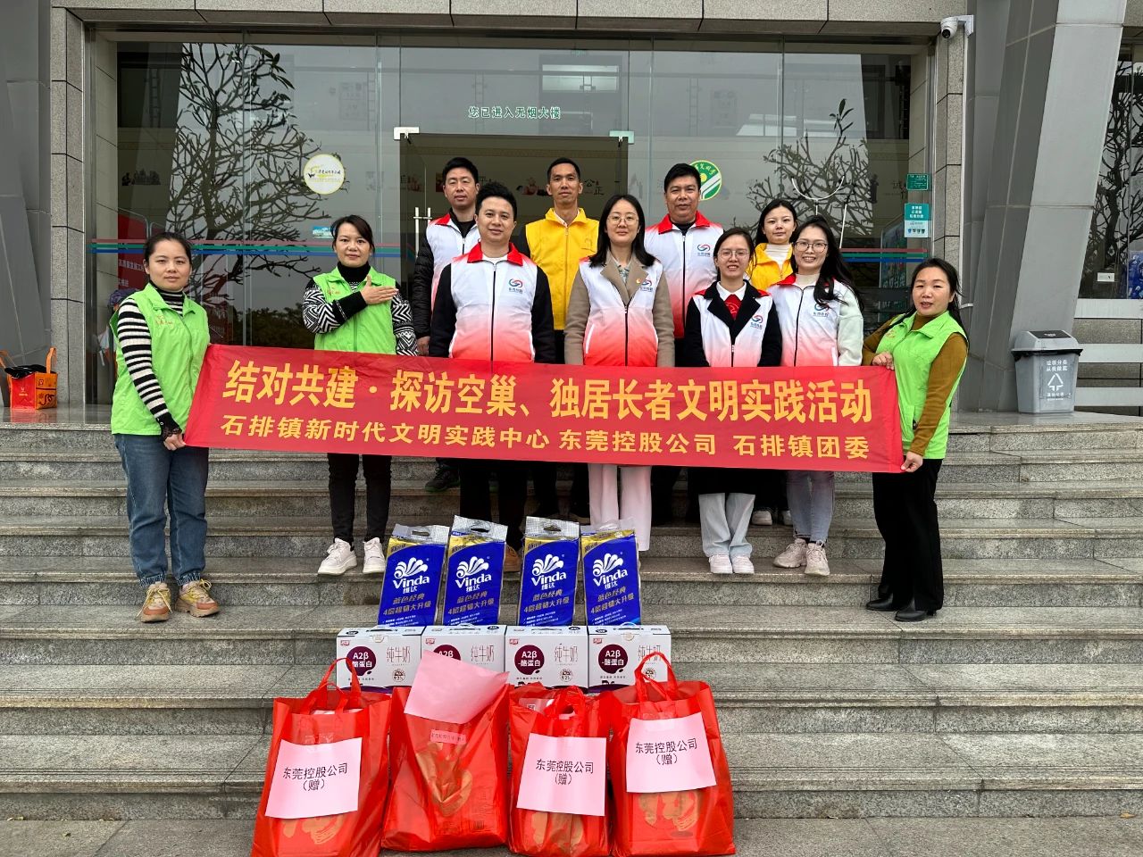 东莞控股机关党支部与石排镇新时代文明实践中心开展结对共建活动,组织党员代表走访慰问当地独居长者,为其送上关怀和祝福,彰显国企社会担当。