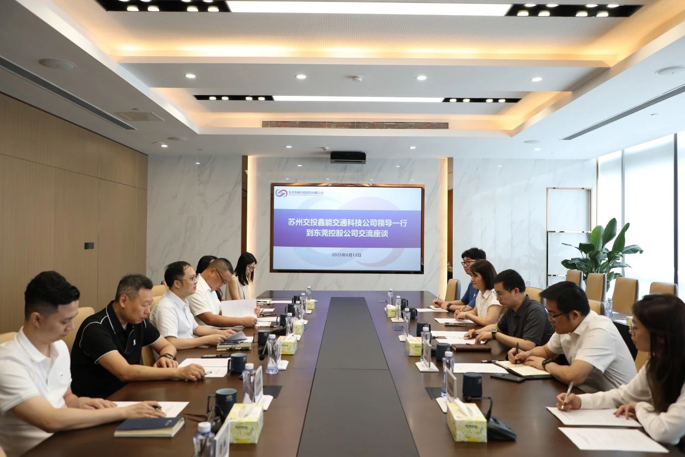 6月12日上午,苏州交投鑫能交通科技有限公司(以下简称“苏州鑫能”)董事长、总经理尤益带队到东莞控股开展调研交流,市交投集团总经济师,东莞控股党委书记、董事长王崇恩,东莞控股、康亿创公司、东能公司相关人员参加交流。