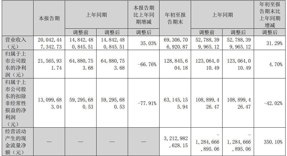 今年前三季度,天音控股实现营业收入为693.07亿元,同比增长31.29%;归属于上市公司股东的净利润为1.29亿元,同比增长4.70%。其中第三季度实现营业收入为200.42亿元,同比增长35.03%;归属于上市公司股东的净利润为2156.59万元,同比下降66.76%。