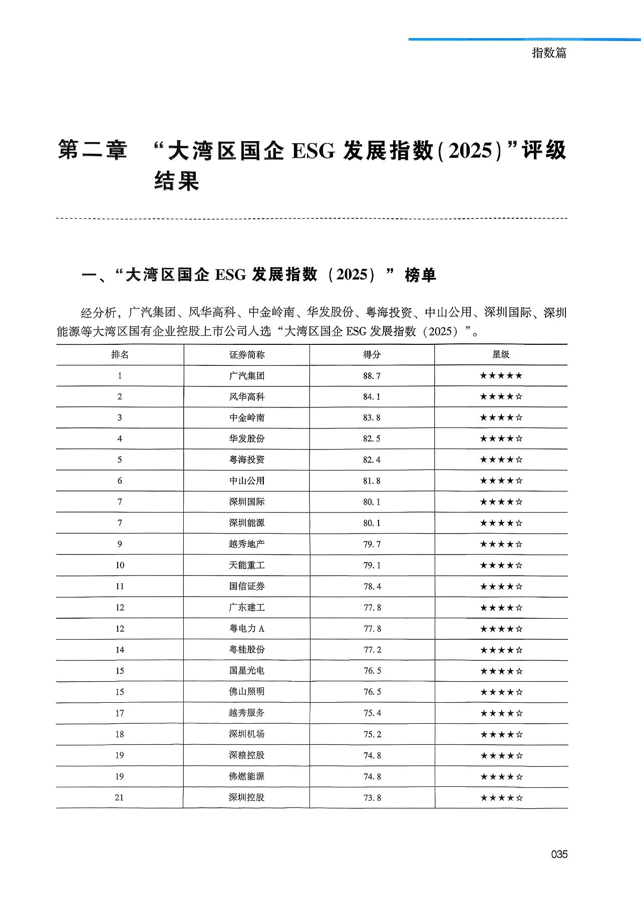 《粤港澳大湾区国有企业控股上市公司环境、社会及治理(ESG)蓝皮书(2025)》通过构建大湾区国有控股上市公司ESG评价模型,对企业ESG综合表现进行专业评估,最终遴选位列前30的公司入选。