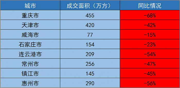 报告显示,今年上半年8座城市的商品房成交量同比均有所下降。