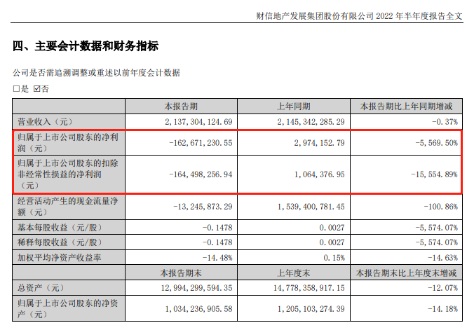 近期,重庆A股上市公司财信发展披露了2022年半年度报告。