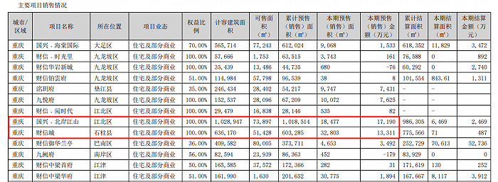 重庆作为财信发展的“大本营”,在今年上半年为其贡献了大量的销售额。如江北区的国兴北岸江山与石柱县的财信城,二者上半年的预售金额合计超过3亿。