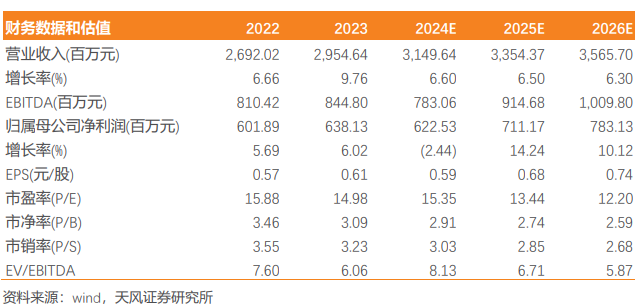 盈利预测:预计 24-26 年公司收入增速分别为 7%/7%/6%(金额31.5/33.5/35.7 亿元),归母净利润增速分别为-2%/14%/10%(金额6.2/7.1/7.8 亿元),对应 PE 分别为 15X/13X/12X,维持“买入”评级。风险提示:原材料成本上涨过快;行业竞争加剧;需求及升级低于预期。