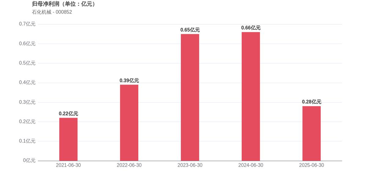 在2025年上半年,石化机械的经营业绩出现明显下滑,实现营业收入34.76亿元,同比下滑10.55%;实现归母净利润0.28亿元,同比下滑57.33%。