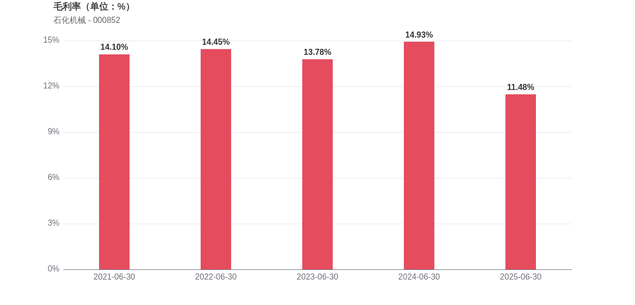 从反映盈利质量的指标来看,石化机械净利率由2024年上半年的2.02%下滑至1.03%,毛利率从14.93%下滑至11.48%,净资产收益率同比下降1.27个百分点至0.90%,显示出公司盈利能力承压。