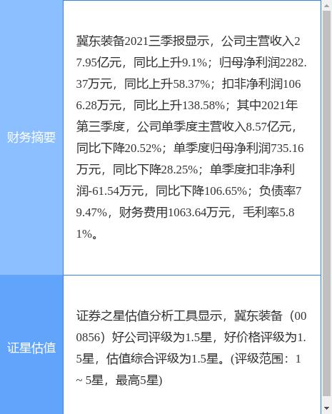 冀东装备公告,预计2021年度归属于上市公司股东的净利润1700万元-2210万元,同比增长1.82%-32.36%;扣除非经常性损益后的净利润143万元-653万元,上年同期为亏损819.88万元。