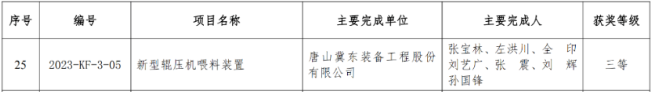 近日,冀东装备自主研发的“新型辊压机喂料装置”和“新型矿渣立式辊磨机”项目荣获第十七届建材机械行业技术革新奖三等奖。