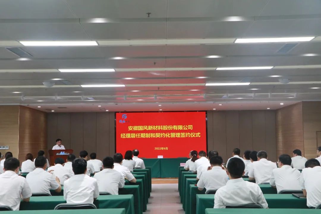 6月10日,国风新材举行经理层成员任期制和契约化管理签约仪式。公司党委书记、董事长黄琼宜与经理层成员逐一签订岗位聘任协议、年度经营业绩责任书和任期经营业绩责任书。党委副书记、董事张家安主持签约仪式。