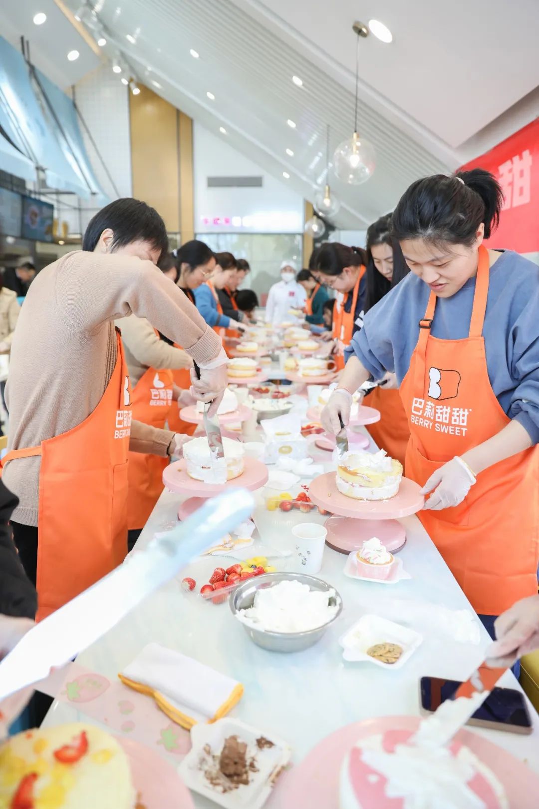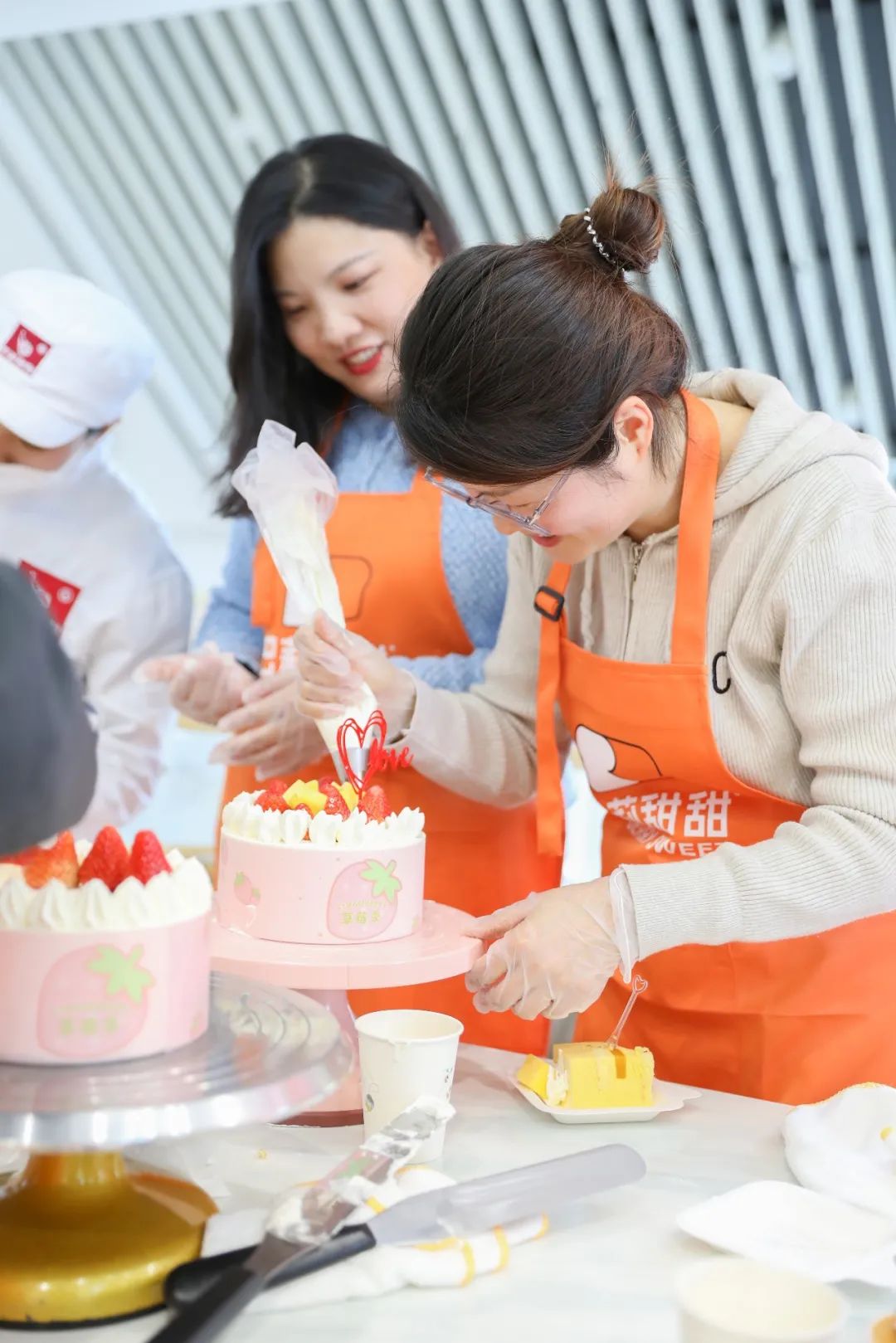 7日下午,一场DIY裱花蛋糕活动在半边街巴莉甜甜烘焙坊欢笑声中进行。烘焙坊为大家提供了各种食材和工具,还有专业的蛋糕师傅现场演示制作蛋糕的技巧。女职工们正在学习如何进行蛋糕裱花、装饰,制作属于自己的独一无二的蛋糕。一转、一刮、一挤,都是大家满满期待与祝福,承载着公司给予的关爱与温暖。