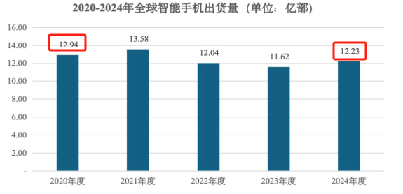 而就行业发展情况来看,在目前行业整体的成长性仍然并不乐观、且标的公司长期的营收年复合增长率也较低的情况下,评估机构所确定标的公司高溢价股权评估价值是否合理存疑。如前述所分析,标的公司电子屏幕光学保护膜材料产品主要应用于下游消费电子领域,而近年来全球消费电子产品的整体需求呈现显著放缓的趋势。以终端产品智能手机为例,其市场需求呈现长期疲软态势。根据资产评估报告显示,2020年全球智能手机的出货量为12.94亿部,而2024年的出货量则为12.23亿部,较2020年甚至还有所减少,据此测算其出货量年复合增长率为-1.40%。